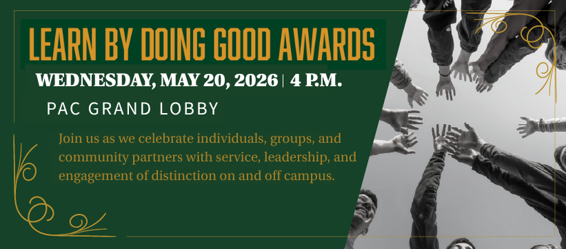 The Learn by Doing Good Awards commemorate members of the campus community demonstrating excellence and distinction in leadership and engagement on campus, as well as faculty, staff, students and community partner agencies for off-campus contributions to the quality of life in San Luis Obispo County and their spirit of civic engagement. Nominations are now open! Please click on the banner above to access a nomination form. Deadline: Sunday, May 10 @ 11:59pm.
