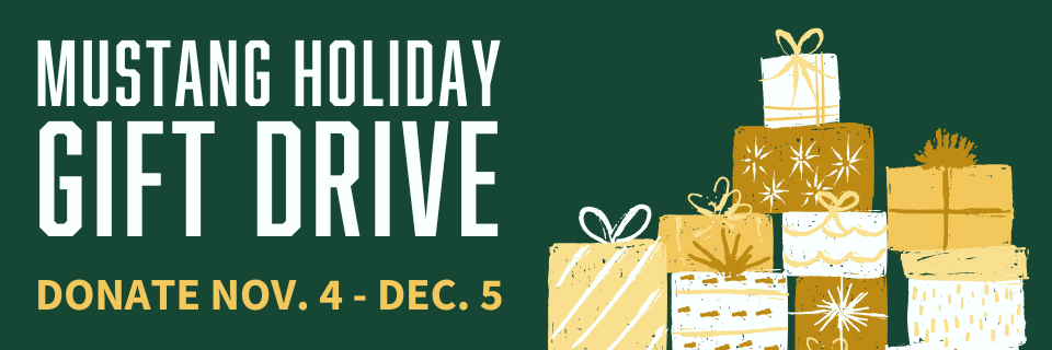 The Center for Service in Action (CSA) invites all students, staff, faculty, alumni and supporters to contribute to the Mustang Holiday Gift Drive. Last year we provided almost 400 gifts to local children and teens for the holidays, and we are hoping to donate even more this year with your support. We are once again partnering with the San Luis Obispo County Department of Social Services, Housing Authority of SLO and, Cal Poly's Students with Dependents!